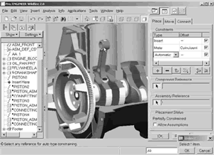 在以前的pro/engineer版本中,组件功能是单独的应用程序,现在,pro/engineer wildfire野火版2.0中集成了组件功能,使整个系统具备了强大的机械设计能力。设计者无需离开组件界面,即可利用其余的自由度动态拖动元件,展示组件的实际运动情况(如图5所示)。在元件放置期间,可以自由拖动元件,以便检查干涉或方便快捷地为要放置的零件定位。组件中加入运动设计后,就能在设计中引入机械动力学来模拟真实条件,创建凸轮、滑轮和齿轮,并应用由重力和驱动电动机等施加的实际力。