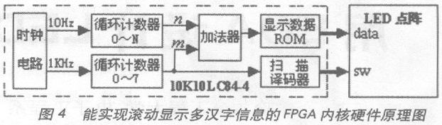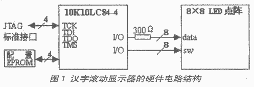 图1给出的就是一个使用美国ALTERA公司10K系列FPGA设计的可支持滚动显示多汉字信息的通用硬件电路。