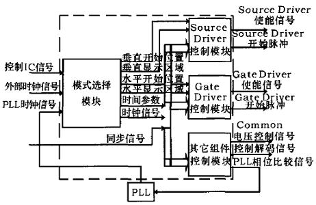 其它组件控制模块在Driver工作时,由行、场同步信号及时间参数,控制其它一些组件与Driver工作时序相匹配,使LCD面板正常显示。
