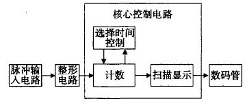 本系统由脉冲输入电路、整形电路、核心控制电路(由FPGA构成)和输出显示电路组成,如图2所示。