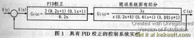 该信号的幅频响应是具有sinx/x函数特性,可起到低通滤波器的作用。其连续时间等效电路模型如图6所示。图中,CAM中的运放用电压控制电压源等效,电压传输系统等于FPAA中运放的开环增益le4。随动系统的理论传输函数可用SPICE中的Laplace行为模型表示。将图5中的等效电阻器(CRES)、正“存储器”(PSTR)、负“存储器”(NSTR)以及采样保持器都用它们的连续时间等效电路代替,就可得到整个PID校正的控制系统的开环频域SPICE仿真模型,其仿真结果如图7所示。图中①代表FPAA实现的离散PID控制器的幅频响应,②代表经采样保持器输出的PID控制器的幅频响应,③和④表示整个PID串联校正的控制系统的开环幅频和相频曲线,从图中可以读出穿越频率是5.28Hz,相位裕量为41°。而在PID串联校正前,随动系统的穿越频率是2.03Hz,相位裕量为10°。