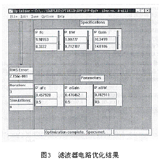 (1) 新建设计项目,完成电路原理图设计。这一歩的关键是在电路中放置OPTPARAM符号,用于设置电路优化设计过程中需要调整的元器件名称及有关参数值;
