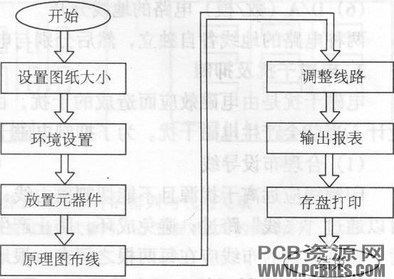 电路原理图的设计主要是利用protel98或protel99se的原理图设计系统(Advanc甜sehematic-)来绘制一张电路原理图,它是整个电路设计的基础。在这一过程中,要充分利用Protel 98所提供的各种绘图工具和各种编辑功能。其设计流程如图所示。