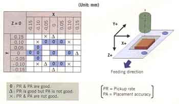 研究表明,在Y方向±0.07mm的精度对于确保成功的0201贴装是必要的。还有,成功的贴装要求在X方向±0.1mm的公差,在Z方向±0.1mm,以达到0.2mm的目标值。纠正吸嘴X/Y轴的运动是保证稳定和持续的元件吸取的关键。