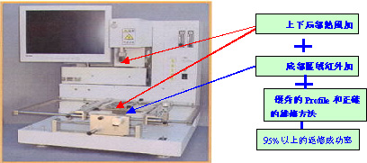 3.全热风(HotAir)和全红外线(IR)式焊接系统都有其自身的优点与缺点,为了避免二者缺陷,我们选择了热风加热为主,红外线焊接为辅(HotAir+IR)的焊接系统<如图(九)>,虽然红外线焊接为主,热风加热为辅的焊接设备在功能上与我们相比美,但其昴贵的价格是我们难以接受的. 1.BGA Rework焊接曲线的优化<如图(十)>