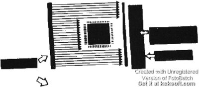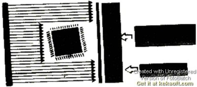 从图中可以看出在第一种位置时影象传感器上所得的遮影与片状元件所得遮影形状是一样的(只是QFP遮影长,片状元件遮影短),因此,此种位置只能用于QFP引脚间距较大的元件