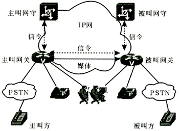 呼叫由PSTN发起,通过中继接口接入到网关,也可能是网关直接连接的普通电话发起。网关获得用户希望呼叫的被叫号码后,向网守发出接入请求,申请地址解析,网守根据被叫号码查找被叫网关的IP地址,并根据网络资源情况来判断是否应该建立连接,若可建立连接,则将被叫网关的IP地址通知给主叫网关。主叫网关在得到被叫网关的IP地址后,通过IP网络与对方网关建立起呼叫连接,被叫侧网关向PSTN网络发起呼叫并由交换机向被叫用户振铃。被叫摘机后,被叫侧网关和交换机之间的话音通道被连通。