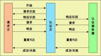 802.1x在请求方、认证方与认证服务器之间提供一个可扩展架构,来交换网络上最终用于认证设备的消息。在各组件间传输的消息类型受可扩展认证协议(EAP)的控制(图2)。这种消息描述了采用请求与响应序列的认证方法。
