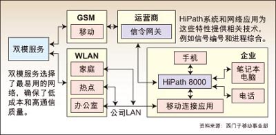 图:西门子的HiPath Mobile Connect系统承诺能够实现真正的FMC