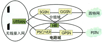 R99是比较成熟的版本,其无线接入部分采用全新的3G接入网(RAN),核心网则在MSC+GPRS的网络基础上演进,如图1所示: