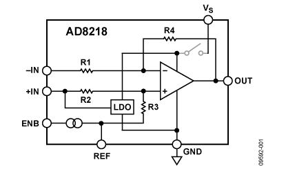 AD8218是一款高压、高分辨率电流放大器。设定增益为20 V/V,在整个温度范围内的最大增益误差为±0.35%。缓冲输出电压可以直接与任何典型转换器连接。AD8218在4V至80V范围内具有出色的输入共模抑制性能,它在分流电阻上执行双向电流测量,适合各种工业和电信应用,包括电机控制、电池管理和基站功率放大器偏置控制等。在−40°C至+125°C的整个温度范围内,AD8218都能提供突破性的性能。它采用零漂移内核,在整个工作温度范围和共模电压范围内,失调漂移典型值为±100 nV/°C。此外,设计中还特别注意在0 mV至~250 mV的整个输入差分电压范围内保持线性输出。AD8218同时包括一个80 mV内部基准电压源,用于在单向电流检测应用中提供优化的动态范围。典型输入失调电压为±50 μV。AD8218采用8引脚MSOP封装。