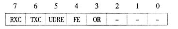 位7——RXC:UART接收完成,当使用中断数据接收时,接收完成中断子程序必须读UDR而消除