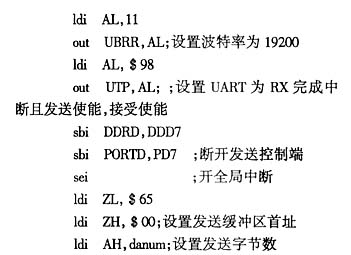 选用标准的晶振频率3.864MHz(误差为0),波特率确定为19200波特,且用PD7引脚控制