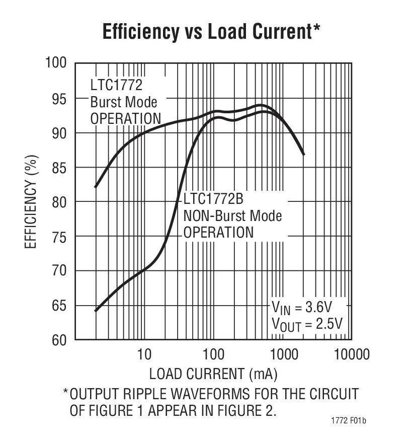 For a Burst Mode operation enabled version of the LTC1772B, please refer to the LTC1772 data sheet.