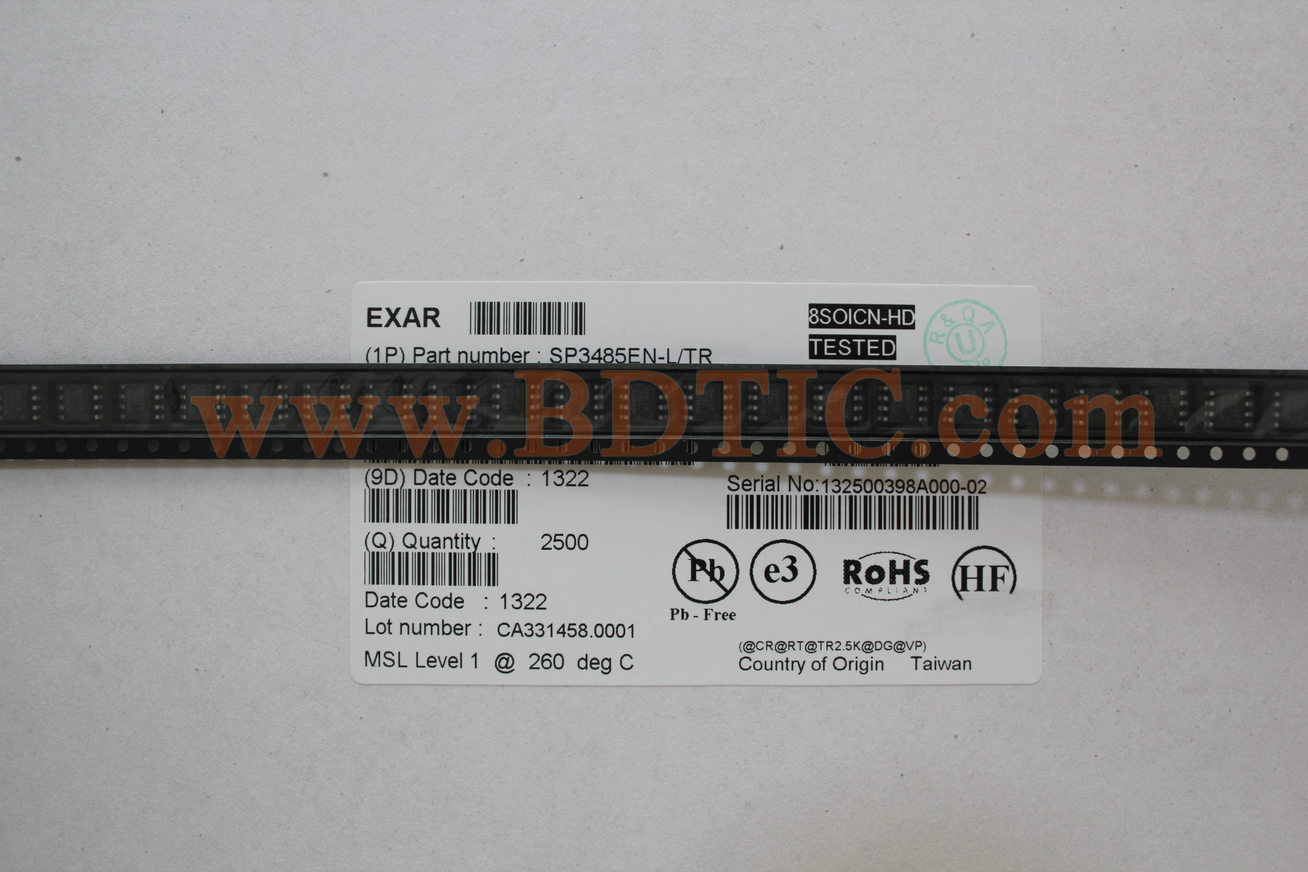 SP3485EN-L/TR 封装产地声明:2012 以前产地为Malaysia 马来西亚,2013 年以后为Taiwan 台湾产地。产品技术网站:http://www.bdtic.com/EXAR/SP3485.html